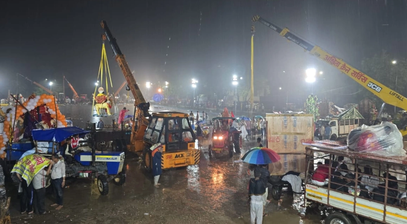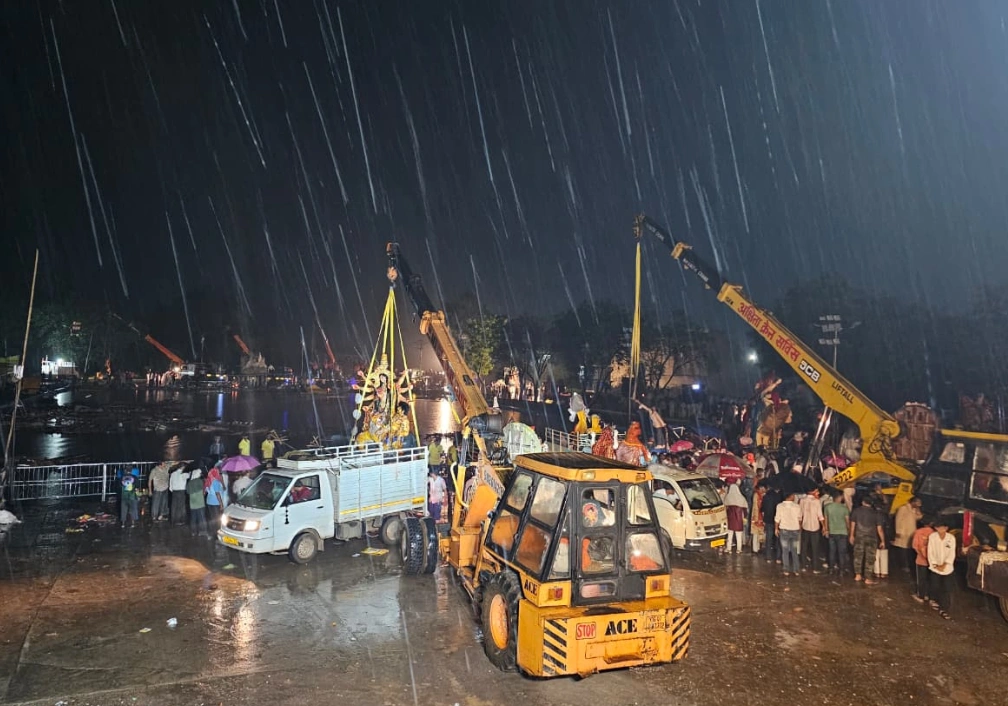 “महादेवघाट विसर्जन कुण्ड में 454 दुर्गा मूर्तियों का श्रद्धापूर्ण विसर्जन, बारिश के बीच भी जारी रहा भक्तों का उत्साह”