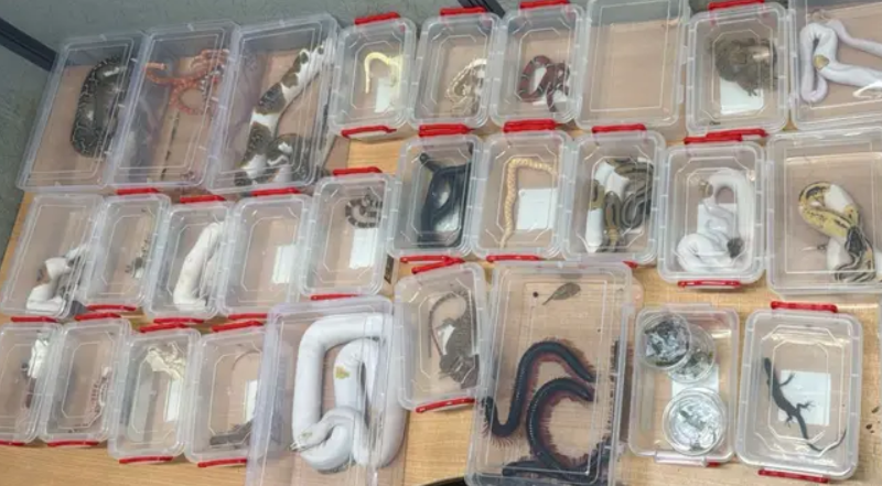 तलाशी लेने पर बैग से सांपों और छिपकलियों की कई दुर्लभ प्रजातियां पाई गईं—