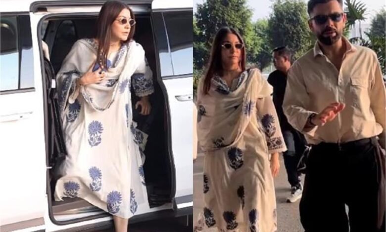 वहीं, अनुष्का शर्मा ने एयरपोर्ट लुक के लिए आइवरी और नीले रंग का पारंपरिक कॉटन आउटफिट पहना। उनके लॉन्ग व्हाइट कुर्ता पर ब्लू कलर की फ्लोरल थ्रेड एम्ब्रॉयडरी की गई थी। कुर्ते में फुल स्लीव्स, रिलैक्स्ड फिट, स्प्लिट राउंड नेकलाइन और साइड स्लिट्स थे, जो इसे आरामदायक और स्टाइलिश बनाते दिखे।