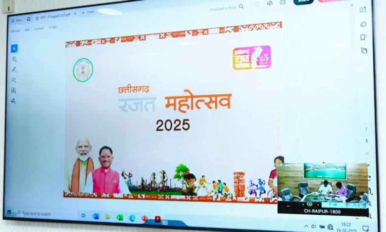 रजत महोत्सव की जोरदार तैयारियां, 25 वर्षों की विकास यात्रा होगी प्रदर्शित छत्तीसगढ़ के निर्माण की 25वीं वर्षगांठ को यादगार बनाने के लिए 15 अगस्त से रजत महोत्सव की शुरुआत हुई है, जो 25 सप्ताह तक चलेगी। मुख्यमंत्री साय ने सभी जिलों के कलेक्टरों को निर्देशित किया कि वे अपने-अपने क्षेत्र में आयोजन कर रजत महोत्सव को जनभागीदारी का उत्सव बनाएं। कार्यक्रमों का विवरण पोर्टल पर अपलोड किया जाए और प्रचार-प्रसार को गति दी जाए। सेवा पखवाड़ा से जुड़ेगा रजत महोत्सव मुख्यमंत्री साय ने अधिकारियों को निर्देश देते हुए कहा कि 17 सितंबर से लेकर 2 अक्टूबर तक राज्य में ‘सेवा पखवाड़ा’ मनाया जाएगा जो छत्तीसगढ़ रजत महोत्सव का हिस्सा होगा। इस दौरान रक्तदान शिविर, स्वास्थ्य कैंप, राजस्व कैम्प जैसे जनसेवा के कार्यक्रम आयोजित किए जाएंगे। मुख्यमंत्री  साय ने कहा कि इस अवसर को राज्य के हर नागरिक से जोड़कर जनसंपर्क को और मजबूत किया जाए। समीक्षा बैठक में मुख्य सचिव  अमिताभ जैन, मुख्यमंत्री के सचिव  राहुल भगत,  पी दयानंद, वित्त सचिव मुकेश बंसल, पीसीसीएफ सुनील मिश्रा, लोक निर्माण विभाग के सचिव  कमलप्रीत सिंह, राजस्व विभाग की सचिव रीना बाबासाहेब कंगाले, , संस्कृति विभाग के प्रबंध संचालक विवेक आचार्य के साथ अन्य विभागों के सचिव, आयुक्त एवं संचालक उपस्थित थे।