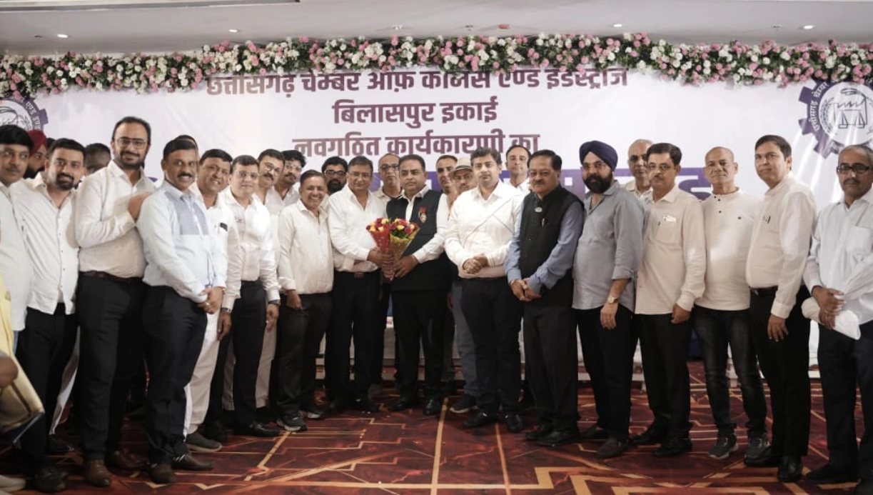 छत्तीसगढ़ चेम्बर ऑफ कॉमर्स एंड इंडस्ट्रीज की बिलासपुर इकाई के नवगठित कार्यकारिणी का शपथ ग्रहण समारोह हर्षोल्लास के साथ संपन्न हुआ। इस कार्यक्रम में छत्तीसगढ़ चेम्बर के प्रदेश अध्यक्ष सतीश थौरानी के नेतृत्व में प्रदेश प्रतिनिधिमंडल ने शपथ ग्रहण समारोह में शामिल होकर बिलासपुर इकाई के नवनिर्वाचित पदाधिकारियों को बधाई दी। कार्यक्रम के अतिथि केंद्रीय राज्य मंत्री तोखन साहू जी, उपमुख्यमंत्री अरुण साव जी, विधायक धरमलाल कौशिक जी, विधायक अमर अग्रवाल जी, विधायक धर्मजीत सिंह जी, विधायक सुशांत शुक्ला जी, क्रेडा अध्यक्ष भुपेंद्र सवन्नी जी, नगर निगम महापौर पूजा विधानी जी, चेम्बर प्रदेश अध्यक्ष सतीश थौरानी जी, पूर्व विधायक एवं चेम्बर के संरक्षक श्रीचंद सुंदरानी जी सहित अन्य अतिथिगण प्रमुख रुप से उपस्थित थे। केंद्रीय राज्य मंत्री तोखन साहू जी ने नवीन कार्यकारिणी को पद एवं गोपनीयता की शपथ दिलाकर बधाई दी। चेम्बर पदाधिकारीओं व सदस्यों को सम्बोधित करते हुए उन्होंने कहा कि यह नई टीम निश्चित रूप से नई ऊर्जा, विश्वास और प्रतिबद्धता के साथ व्यापारियों एवं आम जनता के हित में कार्य करेगी। हाल ही में जीएसटी में हुए बदलाव को उन्होंने व्यापारी और उपभोक्ता दोनों के लिए राहतकारी बताया। उन्होंने यह भी विश्वास व्यक्त किया कि इन सुधारों का सकारात्मक असर आने वाले दीपावली के बाजार पर स्पष्ट रूप से दिखाई देगा। केंद्र एवं राज्य सरकार आप सभी के साथ है यह विश्वास उन्होंने व्यापारियों को दिलाया।