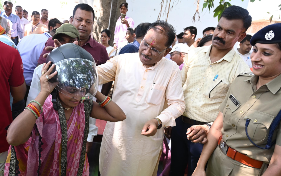 रायपुर 9 मई 2025: सुशासन तिहार के दौरान शासकीय योजनाओं के क्रियान्वयन के औचक निरीक्षण हेतु बलौदाबाजार-भाटापारा जिले के बलदाकछार पहुँचे मुख्यमंत्री विष्णु देव साय ने गाँव के दो युवाओं को अपने हाथों से हेलमेट पहनाकर सड़क सुरक्षा का संदेश दिया। उन्होंने बरगद के नीचे लगी चौपाल में बलदाकछार के 24 वर्षीय धनंजय पटेल और 28 वर्षीय श्रीमती हेमलता चंद्राकर को हेलमेट पहनाया। इस अवसर पर मुख्यमंत्री साय ने शिविर में उपस्थित सभी लोगों से अपील की कि वे दोपहिया वाहन चलाते समय अनिवार्य रूप से हेलमेट पहनें। उन्होंने कहा कि प्रत्येक व्यक्ति की जान अनमोल है। सड़क पर वाहन चलाते समय दुर्घटना की स्थिति में हेलमेट सिर में गंभीर चोटों से बचाता है। उन्होंने कहा कि हेलमेट लगाना न केवल यातायात नियमों का पालन है, बल्कि स्वयं की सुरक्षा के लिए भी अत्यंत आवश्यक है।