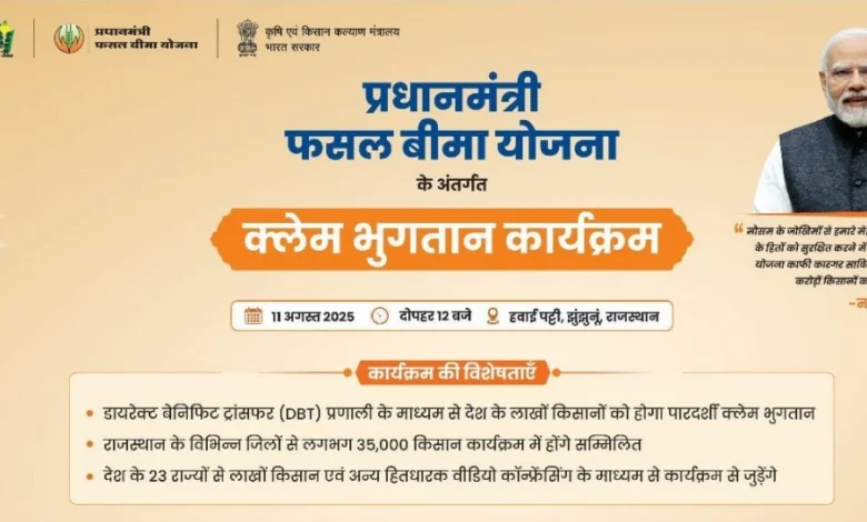 11 अगस्त को प्रधानमंत्री फसल बीमा योजना के क्लेम का होगा पात्र बीमित किसानों के खाते में सीधे अंतरण