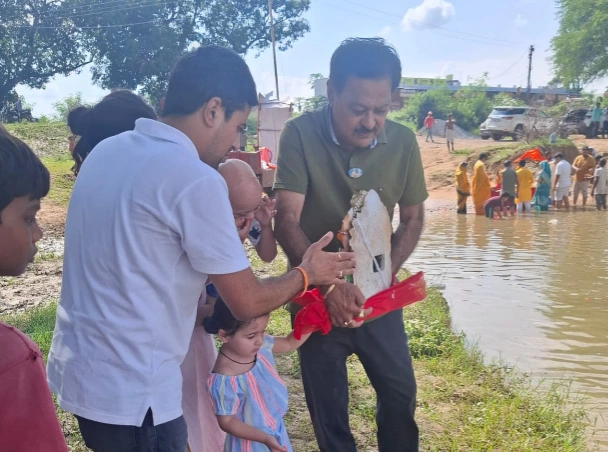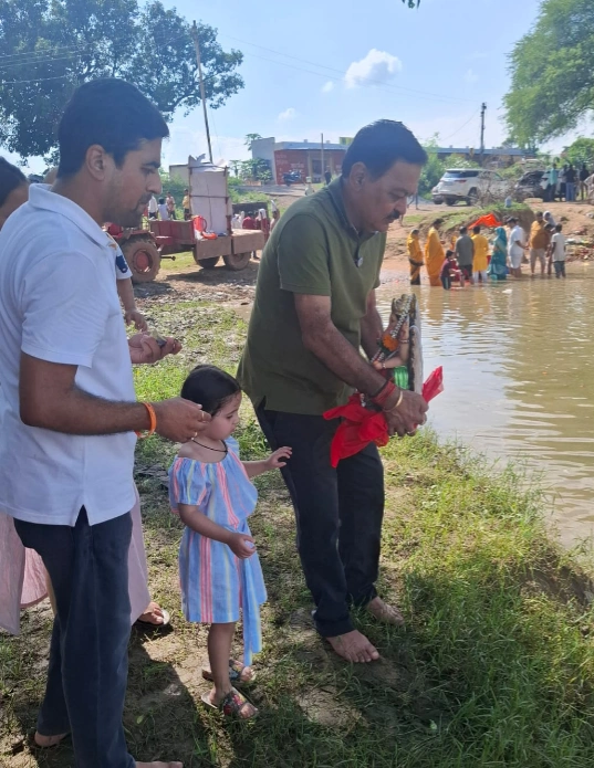 निगम संस्कृति विभाग अध्यक्ष अमर गिदवानी ने अपने घर के श्रीगणेश की मूर्ति का अमलेश्वर में किया श्रद्धापूर्ण विसर्जन