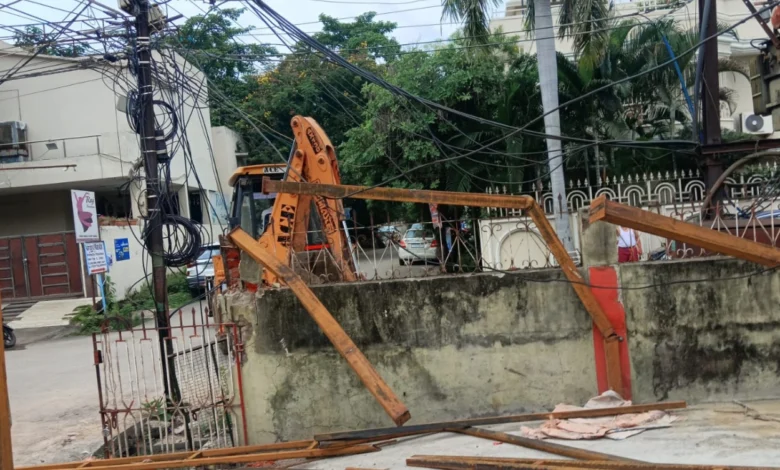 निगम जोन 7 ने चौबे कालोनी शाला मार्ग में बिना अनुमति किये गये निर्माण को हटाया