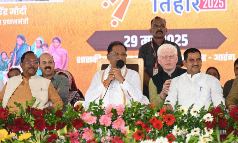 रायपुर 29 मई 2025: मुख्यमंत्री विष्णुदेव साय ने आज रायपुर जिले के ग्राम भैंसा में आयोजित सुशासन शिविर में भाग लिया। इस अवसर पर उन्होंने देशभर में प्रधानमंत्री नरेंद्र मोदी के नेतृत्व में 29 मई से 12 जून तक चलने वाले “विकसित कृषि संकल्प अभियान” के लिए जागरूकता रथ को हरी झंडी दिखाकर शुभारंभ किया। उन्होंने प्रधानमंत्री आवास योजना के अंतर्गत निर्मित 110 पक्के मकानों की चाबियाँ हितग्राहियों को सौंपी। मुख्यमंत्री साय ने कहा कि यह अभियान वैज्ञानिक सहयोग और अनुसंधान को खेतों तक पहुँचाने की दिशा में एक महत्वपूर्ण पहल है। इस अभियान में केंद्र सरकार के वैज्ञानिक राज्य के वैज्ञानिकों के साथ दल बनाकर कार्य करेंगे तथा आने वाले दिनों में राज्य के 13 लाख से अधिक किसानों से संपर्क किया जाएगा। उन्होंने बताया कि कृषि वैज्ञानिक और शोधकर्ता प्रयोगशाला से निकलकर खेतों तक जाकर किसानों को उन्नत और संतुलित कृषि की जानकारी देंगे और किसानों से सुझाव भी लेंगे।