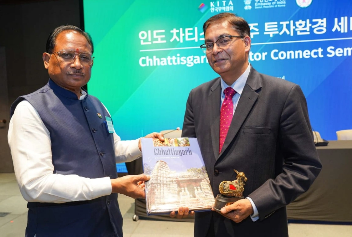 मुख्यमंत्री साय ने यह भी रेखांकित किया कि छत्तीसगढ़ का विकास मॉडल केवल औद्योगिक प्रगति तक सीमित नहीं है, बल्कि यह युवाओं को रोजगार, महिलाओं को स्वावलंबन और किसानों को उपज का बेहतर मूल्य दिलाने पर केंद्रित है। उन्होंने कहा कि औद्योगिक निवेश के साथ-साथ सामाजिक सशक्तिकरण भी हमारी प्राथमिकता है। इस अवसर पर मुख्यमंत्री साय ने भारत के राजदूत अमित कुमार से भारतीय दूतावास, सियोल में मुलाक़ात कर छत्तीसगढ़ में निवेश संभावनाओं पर विस्तार से चर्चा की। मुख्यमंत्री साय ने कहा कि हमने स्टील और खनिज से लेकर इलेक्ट्रॉनिक्स व फूड प्रोसेसिंग तक, मजबूत द्विपक्षीय आर्थिक साझेदारी की संभावनाओं पर विचार-विमर्श किया है। मुख्यमंत्री साय ने दक्षिण कोरिया और छत्तीसगढ़ के बीच सांस्कृतिक एवं कारोबारी रिश्तों को रेखांकित करते हुए कहा कि इन साझेदारियों से प्रौद्योगिकी हस्तांतरण, अनुसंधान एवं नवाचार और उच्च मूल्य रोजगार के अवसर तेजी से बढ़ेंगे। उन्होंने कोरियाई निवेशकों से आग्रह किया कि वे छत्तीसगढ़ को अपने नए औद्योगिक निवेश स्थल के रूप में चुनें और साझा समृद्धि की इस यात्रा का हिस्सा बनें। इस अवसर पर मुख्यमंत्री के साथ प्रदेश के उद्योग विभाग के वरिष्ठ अधिकारी एवं निवेश संवर्धन एजेंसियों के प्रतिनिधि उपस्थित थे।