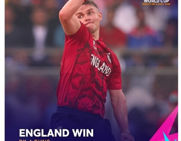 मुंबई- आईसीसी टी-20 विश्व कप 2026 में रविवार को इंग्लैंड और नेपाल के बीच बेहद रोमांचक मुकाबला देखने को मिला। मुंबई के वानखेड़े स्टेडियम में खेले गए ग्रुप सी के इस मैच में नेपाल को आखिरी ओवर में जीत के लिए 10 रन चाहिए थे, लेकिन टीम सिर्फ 5 रन ही बना सकी। इंग्लैंड ने मुकाबला चार रन से जीतकर टूर्नामेंट में विजयी आगाज किया।