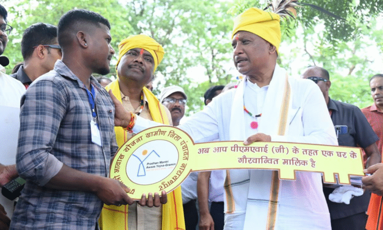 नारायणपुर, 23 मई 2025: ओरछा विकासखण्ड़ के बासिंग सुरक्षा कैंप में आयोजित जन चौपाल कार्यक्रम में मुख्यमंत्री विष्णु देव साय ने कहा कि शासकीय जनकल्याणकारी योजनाओं का क्षेत्र में क्रियान्वयन का जायजा लेने आप लोंगों के बीच आया हूँ। सुशासन तिहार के माध्यम से जनता की समस्याओं और मांगों के लिए कार्यक्रम किया जिसमें प्राप्त आवेदनों का विभागों द्वारा निराकरण किया गया। मुख्यमंत्री ने कहा कि अबूझमाड़ एक प्राकृतिक सम्पन्नता वाला क्षेत्र है जहाँ नक्सलवाद के कारण विकास बाधित रहा है। जवानों हौसलों से अब विकास कार्य को गति मिली है, केंद्र सरकार के सहयोग से अब नक्सल गतिविधियों पर अंकुश लगा रहे है। नक्सल गतिविधियों पर नियंत्रण उपरांत क्षेत्र प्राकृतिक सौंदर्य भरपूर यह क्षेत्र सही मायने में स्वर्ग बन जाएगा। कार्यक्रम में उपमुख्यमंत्री विजय शर्मा, वनमंत्री केदार कश्यप भी उपस्थित थे। कार्यक्रम में मुख्य अतिथियों का ग्रामीणों ने पारंपरिक तरीके से सिर पर पीला साफा पहनाकर व कलगी लगाकर और हार पहनाकर आत्मीय स्वागत किया। समर कैंप के बच्चों ने अपने हाथों से बनाई सजावटी सामानों से मुख्यमंत्री, गृहमंत्री और वनमंत्री का स्वागत किया। साथ ही अबूझमाड़ हाफ पीस मैराथन में हिस्सा लेने वाले दो स्कूली बच्चों से मुलाकात कर उनकी हौसला अफ़ज़ाई की। इस दौरान आँगनबाड़ी के बच्चों ने पुष्प गुच्छ भेंट कर तिलक लगाया जिस पर तीनों अतिथियों ने चारपाई से उठकर उनको चारपाई में खड़ाकर चाकलेट देकर दुलार किया। इसके अलावा मेघावी छात्रों को सम्मानित कर बधाई दी। कार्यक्रम में महतारी वंदन योजनाओं के लाभार्थियों से चर्चा किए। कार्यक्रम में मुख्यमंत्री साय ने प्रधानमंत्री आवास योजना के तहत 6 हितग्राहियों को आवास की चाबी, स्वीकृति आदेश, प्रथम किस्त की राशि प्रदाय किया। इसके अलावा मनरेगा के तहत आवास हितग्राही को नगद राशि का भुगतान किया।मुख्यमंत्री नोनी सशक्तिकरण सहायता योजना और मिनीमाता महतारी जतन योजना के एक-एक लाभार्थी को बीस हजार का चेक वितरित किया। समाज कल्याण विभाग द्वारा दिव्यांग सिदु को व्हीलचेयर, उद्यानिकी विभाग द्वारा सब्जी मिनी किट, मत्स्य पालन विभाग के द्वारा कुरुषनार के मछुवा समिति को सामग्री वितरण किया।