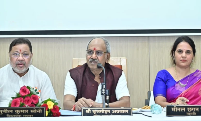 रायपुर लोकसभा सांसद ने आगे नगर निगम रायपुर में प्रस्तावित सिटी डेवलपमेन्ट प्लान में नालों के निर्माण की योजनाएं जलभराव समस्या दूर करने नए नालों का निर्माण करने, मंदिरों के कारण सुप्रसिद्ध पुरानी बस्ती क्षेत्र हेतु विशेष कार्ययोजना, निगम सीमा में सम्मिलित ग्रामों के विकास हेतु विशेष कार्ययोजना, शहर में महिला बाजार के विकास,विभिन्न तालाबों के सौंदर्यीकरण की योजनाओं, सड़क पर लग रहे सब्जी बाजारों को जोनवार उपलब्ध खुले स्थानों को चिन्हित करने, शहर में स्थित महापुरुषों की मूर्तियों के संधारण, जोनवार सांस्कृतिक कार्यक्रम, निगम क्षेत्र में उपलब्ध शासकीय नजुल भूमियों में नई विकास योजनाएं प्रस्तावित करने, इस हेतु विशेषज्ञ आर्टिटेक्टस की सेवाएं लेने कहा है. बृजमोहन अग्रवाल ने नागरिकों को अमृत मिशन और 24×7 परियोजना में आवश्यक तकनीकी सुधार करके समुचित लाभ देने का कार्य करने निर्देशित किया है. उन्होंने जोन कमिश्नरों को जोन के वार्डों में सफाई, पानी, लाईट, सड़क का प्रबंधन पुख्ता बनाने सतत मॉनिटरिंग करवाने हेतु जोन अधिकारियों को वार्डवार कार्य दायित्व देने कहा है.लोकसभा सांसद ने शहर हित में सर्वे करके नए बायपास मार्ग बनाने कार्य योजना बनाने के निर्देश दिए. रायपुर लोकसभा सांसद ने अधिकारियों से नगर निगम रायपुर की शासन के स्तर पर लंबित विकास योजनाओं की सूची उन्हें और सभी विधायकगणों को उपलब्ध करवाने कहा है, ताकि इसे लेकर वे विधायकों के साथ नगरीय प्रशासन एवं विकास विभाग के उप मुख्यमंत्रीश्री अरूण साव से मिलकर जनहित में रायपुर शहर हेतु शीघ्र आवश्यक स्वीकृति राज्य शासन से दिलवाने पहल कर सकें.लोकसभा सांसद ने कहा कि वे छह माह बाद दूसरी समीक्षा बैठक नगर निगम मुख्यालय में आकर लेंगे और उसमें आज दिए गए निर्देशो के पालन की जानकारी लेकर कार्य समीक्षा करेंगे.
