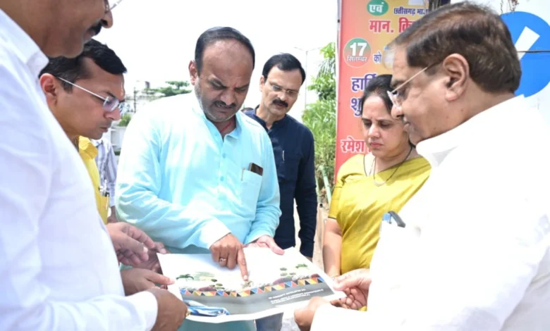 महापौर मीनल चौबे और विधायक मोतीलाल साहू ने शदाणी दरबार के पास मार्ग विभाजक सौंदर्यकरण का भूमिपूजन किया