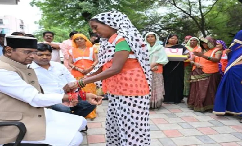 भोपाल : सहकारिता, खेल और युवा कल्याण मंत्री श्री विश्वास कैलाश सारंग ने शनिवार को नरेला विधानसभा में वार्ड 70 के जोन 11 की स्वच्छता मित्र बहनों के साथ रक्षाबंधन का पर्व मनाया। इस अवसर पर स्वच्छता मित्र बहनों ने मंत्री श्री सारंग की कलाई पर स्नेह का पवित्र रक्षासूत्र बांधकर उन्हें दीर्घायु, स्वास्थ्य और सफलता का आशीर्वाद दिया। मंत्री श्री सारंग ने भी सभी बहनों को रक्षाबंधन की हार्दिक शुभकामनाएं दीं और उनके अथक परिश्रम, अनुशासन और कर्मठता की सराहना कर उनका उत्साहवर्धन किया। इस अवसर पर वार्ड 70 के पार्षद और एमआईसी अशोक वाणी भी उपस्थित थे। मंत्री श्री सारंग ने कहा कि बहनों की सजगता और कर्मठता के कारण ही भोपाल ने देश के सबसे स्वच्छ शहरों में अपनी पहचान बनाई है। स्वच्छता मित्र बहनें न केवल स्वच्छता की जिम्मेदारी निभा रही हैं, बल्कि अपने अथक परिश्रम से शहर को गौरव भी दिला रही हैं। ये बहनें स्वच्छता प्रहरी हैं, जिनका योगदान समाज के हर नागरिक के लिए प्रेरणा है।