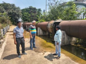 नगर निगम अपर आयुक्त लोकेश्वर साहू ने इंटेकवेल स्थित सागर, सरिता, नीर क्षीर और खारून पम्प हॉउस से रॉ वाटर पम्पो का किया निरीक्षण,