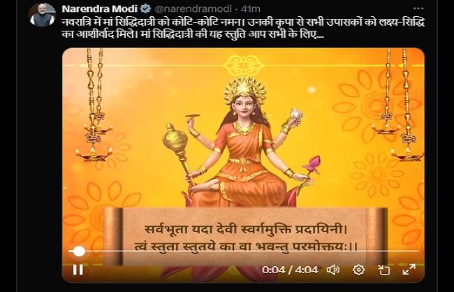 प्रधानमंत्री मोदी ने मां सिद्धिदात्री की स्तुति की
