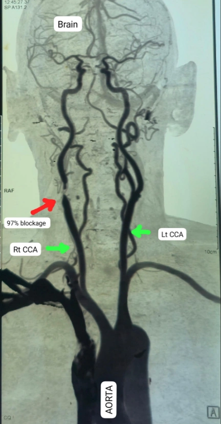 क्या होती है कैरोटिड आर्टरी और क्यों होता है ब्लॉकेज?-कैरोटिड आर्टरी वह मुख्य धमनी होती है जो गले से होते हुए मस्तिष्क तक रक्त पहुंचाती है। इसमें रुकावट का मुख्य कारण होता है — धूम्रपान, तंबाकू सेवन, अनियंत्रित डायबिटीज, उच्च रक्तचाप और कोलेस्ट्रॉल का जमा होना।50% तक ब्लॉकेज होने पर आमतौर पर लक्षण स्पष्ट नहीं होते, परंतु 70-80% से अधिक ब्लॉकेज पर ट्रांजिएंट इस्केमिक अटैक (टीआईए) या छोटे स्ट्रोक जैसे लक्षण सामने आते हैं — जैसे अचानक एक आंख से दिखना बंद होना, मुंह टेढ़ा होना, बोलने में दिक्कत या संतुलन बिगड़ना।