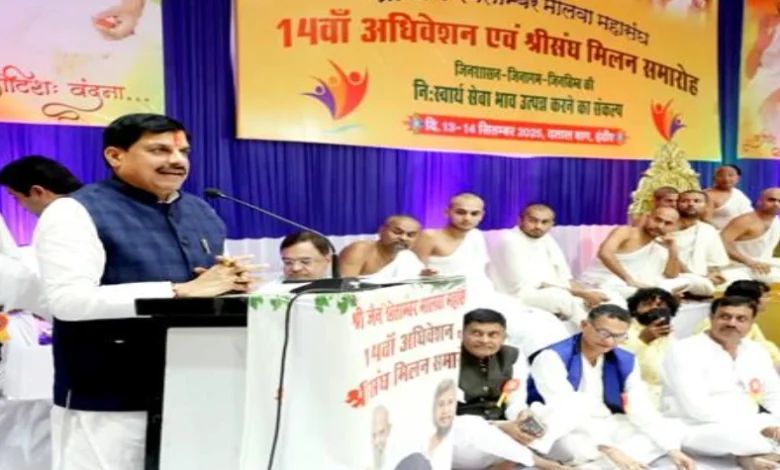 भोपाल : मुख्यमंत्री डॉ. मोहन यादव ने कहा है कि समाज को अनुशासित रखने में संत महात्माओं और मुनियों की महती भूमिका रही है। धर्म गुरुओं के संदेश, उपदेशों से भारतीय संस्कृति अक्षुण्ण है। मुख्यमंत्री डॉ. यादव शनिवार को इंदौर में आयोजित जैन श्वेतांबर मालवा महासंघ के 14 वें अधिवेशन एवं श्रीसंघ मिलन समारोह को संबोधित कर रहे थे। मुख्यमंत्री डॉ. यादव ने कहा कि प्रधानमंत्री श्री नरेन्द्र मोदी के जन्मदिवस 17 सितंबर से प्रदेश में “सेवा पखवाड़ा अभियान” शुरू किया जा रहा है। अभियान सभी जिलों में विभिन्न गतिविधियाँ और कार्यक्रम आयोजित होंगे। उन्होंने सभी से अभियान में सहभागिता का आहवान किया। मुख्यमंत्री डॉ. यादव ने कहा कि प्रदेश में उद्योग विकास, निवेश और स्वरोजगार के अवसर बढ़ाए जा रहे हैं। गौमाताओं, गौशालाओं का संरक्षण, दुग्ध संघ के माध्यम से दुग्ध उत्पादन बढ़ाने में बेहतर कार्य हुए हैं। इन सब प्रयासों से प्रदेश आत्मनिर्भरता की ओर कदम बढ़ा रहा है।