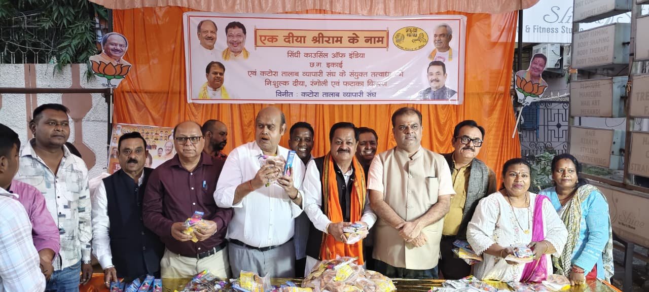 एक दीया राम के नाम सिंधी काउंसिल ने दीए के साथ रंगोली और फटाका कटोरा तालाब में वितरण किया