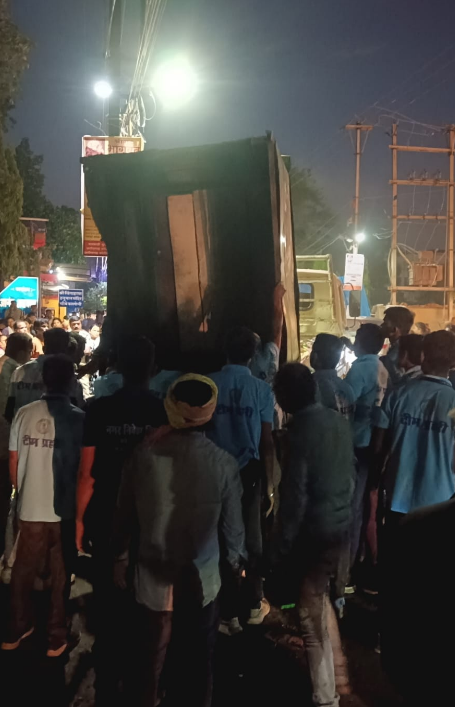 रायपुर – रायपुर जिला कलेक्टर डॉक्टर गौरव कुमार सिंह के आदेशानुसार और नगर पालिक निगम रायपुर के आयुक्त विश्वदीप और जिला वरिष्ठ पुलिस अधीक्षक डॉक्टर लाल उम्मेद सिंह के निर्देशानुसार एवं नगर निगम अपर आयुक्त पंकज के. शर्मा, उपायुक्त डॉ. अंजलि शर्मा, नगर निवेशक आभाष मिश्रा, आशुतोष सिंह, सभी जोन कमिश्नरों, कार्यपालन अभियंताओं के मार्ग निर्देशन में टीम प्रहरी द्वारा नगर निगम क्षेत्र के अंतर्गत सभी जोनों के नगर निवेश विभाग के अधिकारियों की उपस्थिति में राजधानी शहर रायपुर नगर निगम क्षेत्र में जनहित में जनसुविधा हेतु मुख्य मार्गों एवं बाजार क्षेत्रो में अभियान चलाकर यातायात पुलिस बल की उपस्थिति में अतिक्रमण एवं अवैध कब्जे हटाकर सडक यातायात सुगम और सुव्यवस्थित बनाने कार्यवाही जारी है। इस क्रम में आज टीम प्रहरी के अभियान के अंतर्गत नगर निगम मुख्यालय नगर निवेश उड़न दस्ता और नगर निवेश जोन क्रमांक 7 की टीम ने समता कॉलोनी मुख्य मार्ग में अभियान चलाकर मार्ग को लगभग 12 ठेलों और लगभग 23 विज्ञापन बोर्ड को जप्त करते हुए जनहित में जनसुविधा हेतु कब्जामुक्त करवाकर जोन 7 जोन कमिश्नर राकेश शर्मा एवं कार्यपालन अभियंता ईश्वर लाल टावरे के मार्गनिर्देशन उप अभियंता नगर निवेश सुश्री रूचिका मिश्रा की उपस्थिति में सुगम और सुव्यवस्थित यातायात कायम कर नागरिकों को त्वरित राहत दिलवायी ।