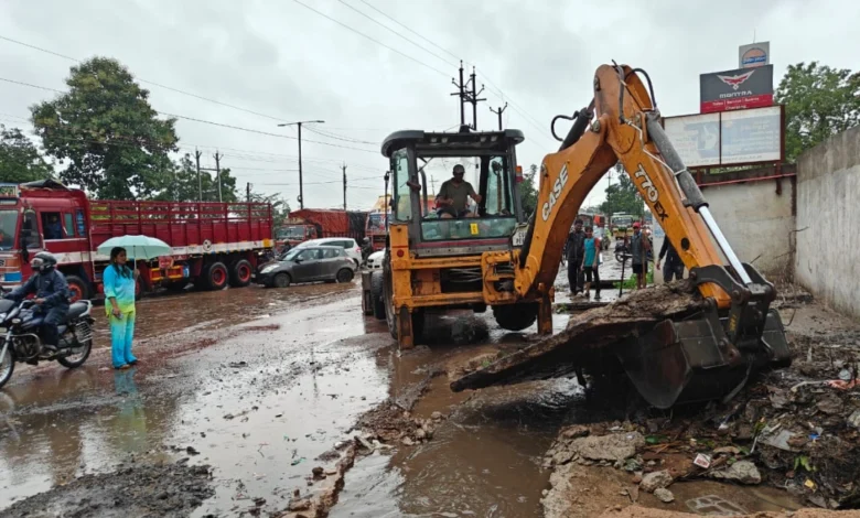 हाइवे पर जलभराव की शिकायत पर निगम की त्वरित कार्रवाई, मुख्य नाले के पाट तोड़कर निकास सुगम बनाया