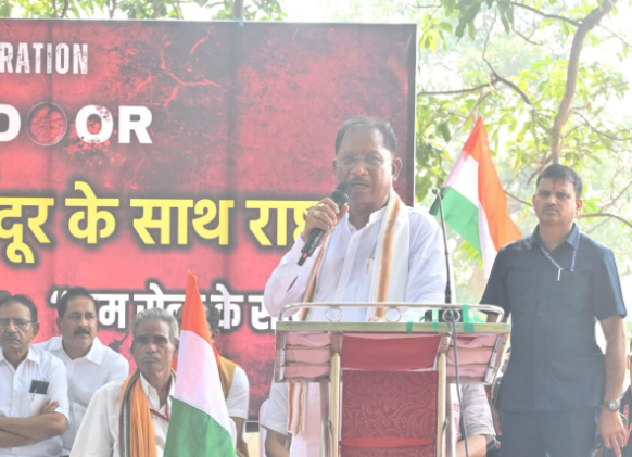 रायपुर 17 मई 2025: “ऑपरेशन सिंदूर” की सफलता पर आज जशपुर जिले के दुलदुला विकासखंड के चराईडांड में देशभक्ति से ओत-प्रोत तिरंगा यात्रा निकली गई। मुख्यमंत्री विष्णु देव साय ने गांव के शिव मंदिर से आम बगीचा तक निकली गई इस भव्य यात्रा का शुभारंभ किया। मुख्यमंत्री के साथ हाथों में तिरंगा लिए जशपुर विधायक श्रीमती रायमुनि भगत , नगर पालिका अध्यक्ष  अरविन्द भगत, जिला पंचायत अध्यक्ष  सालिक साय, जिला पंचायत उपाध्यक्ष  शौर्य प्रताप सिंह जूदेव, भरत सिंह,  विक्रमादित्य सिंह जूदेव,  सुनील गुप्ता,  कृष्णा राय, सरगुजा कमिश्नर  नरेन्द्र कुमार दुग्गा, आईजी  दीपक झा, कलेक्टर  रोहित व्यास, एसएसपी शशि मोहन सिंह, जिला पंचायत सीईओ  अभिषेक कुमार, जनप्रतिनिधिगण, पंचायत एवं नगरीय निकायों के प्रतिनिधि, अधिकारी, आम नागरिक, बच्चे एवं जवान तिरंगा यात्रा में शामिल हुए। लोग हाथ में तिरंगा लेकर उत्साहपूर्वक यात्रा में शामिल हुए। यात्रा के दौरान ‘भारत माता की जय’, ‘वंदे मातरम्’ और ‘जय हिंद’ के नारों से पूरा वातावरण गूंज उठा। मुख्यमंत्री  विष्णु देव साय ने इस अवसर पर कहा कि “यह यात्रा न केवल तिरंगे के प्रति सम्मान है, बल्कि यह हमारे शहीदों को सच्ची श्रद्धांजलि भी है। यह अभियान देश की एकता, अखंडता और संप्रभुता को सशक्त बनाने का प्रतीक है।”ऑपरेशन सिंदूर’ के अंतर्गत पूरे जिले में एक साथ तिरंगा यात्रा आयोजित की गई, जिसका उद्देश्य युवाओं में देशभक्ति की भावना का संचार करना, जनसहभागिता के माध्यम से राष्ट्रीय एकता को मजबूत करना है। मुख्यमंत्री विष्णु देव साय ने बड़ी संख्या में उपस्थित युवाओं, मातृशक्ति एवं नागरिकों को संबोधित करते हुए कहा कि कम समय में इतनी बड़ी भागीदारी इस बात का प्रमाण है कि देश की जनता एकजुट होकर राष्ट्र के लिए खड़ी है। उन्होंने सभी प्रतिभागियों के प्रति आभार प्रकट किया।