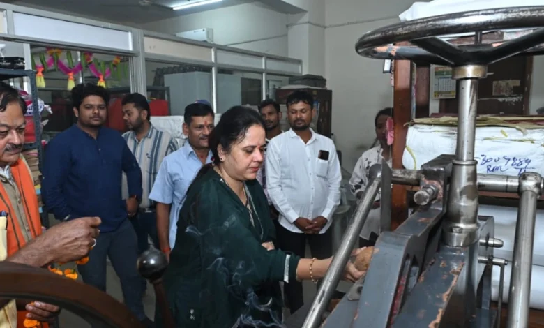 रायपुर –आज विजयादशमी पर्व के पावन अवसर पर रायपुर नगर पालिक निगम की महापौर मीनल चौबे, सभापति सूर्यकान्त राठौड़ ने नगर निगम मुख्यालय भवन के भूतल पर स्थित नगर निगम प्रेस और जनसम्पर्क विभाग में नगर निगम की मिनी ऑफसेट मशीन की परम्परागत पूजा की. इसके साथ नगर निगम संस्कृति विभाग के अध्यक्ष अमर गिदवानी,जल कार्य विभाग अध्यक्ष संतोष सीमा साहू, जोन 4 अध्यक्ष मुरली शर्मा, अपर आयुक्त विनोद पाण्डेय, जोन 4 जोन कमिश्नर अरुण ध्रुव ने प्रेस और जनसम्पर्क विभाग के अधिकारियों और कर्मचारियों सहित निगम की मिनी ऑफसेट मशीन मशीन की पूजा की और प्रेस और जनसम्पर्क विभाग के सभी अधिकारियों और कर्मचारियों को दशहरा पर्व के पावन अवसर की हार्दिक शुभकामनायें दीं.