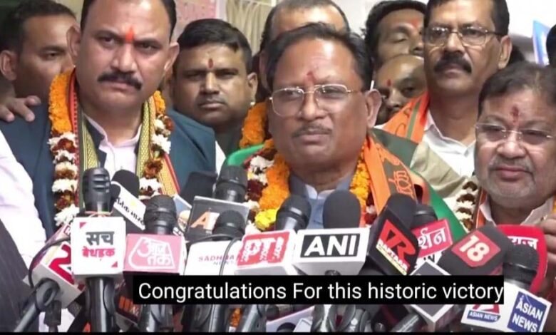 मुख्यमंत्री विष्णुदेव साय ने कहा कि जीत के लिए मैं आदरणीय यशस्वी प्रधानमंत्री नरेन्द्र मोदी का आभार प्रकट करता हूं। जिनका जादू पूरे देश में चल रहा है। हमारे राष्ट्रीय अध्यक्ष जेपी नड्डा , केन्द्रीय गृहमंत्री अमित शाह को बहुत-बहुत बधाई देता हूं।